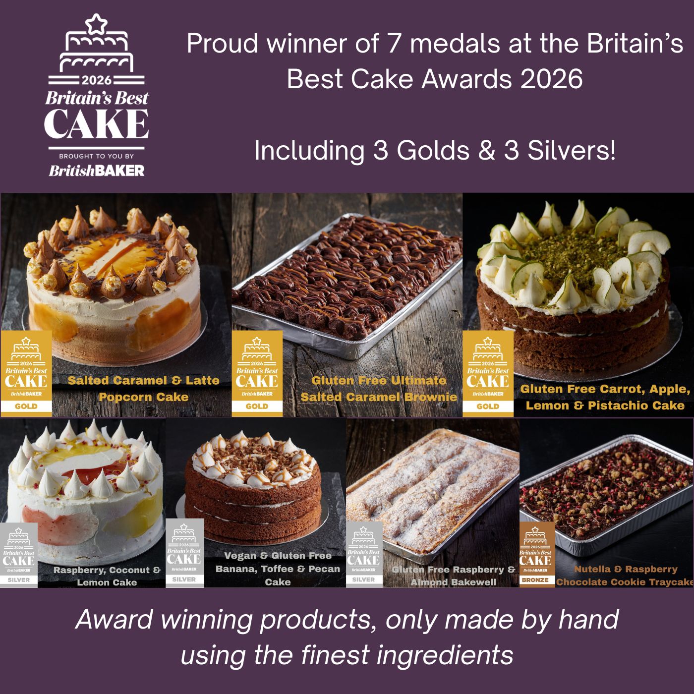 We are very proud to announce we have won 7 medals at the Britains Best Cake Awards: